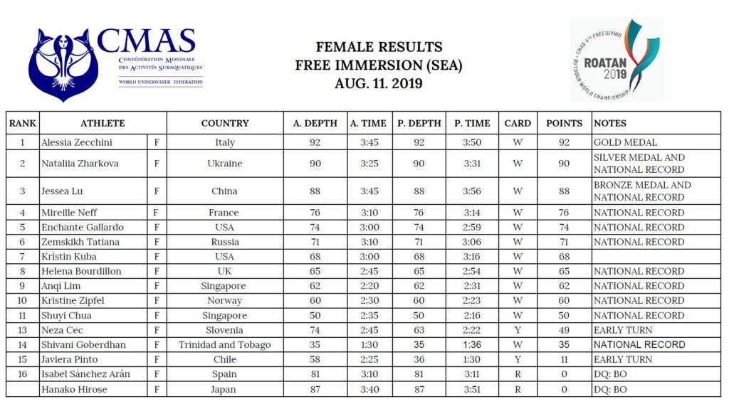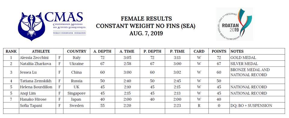 image Classifica Mondiale Femminile di Apnea Free Immersion 2019