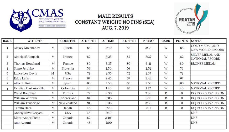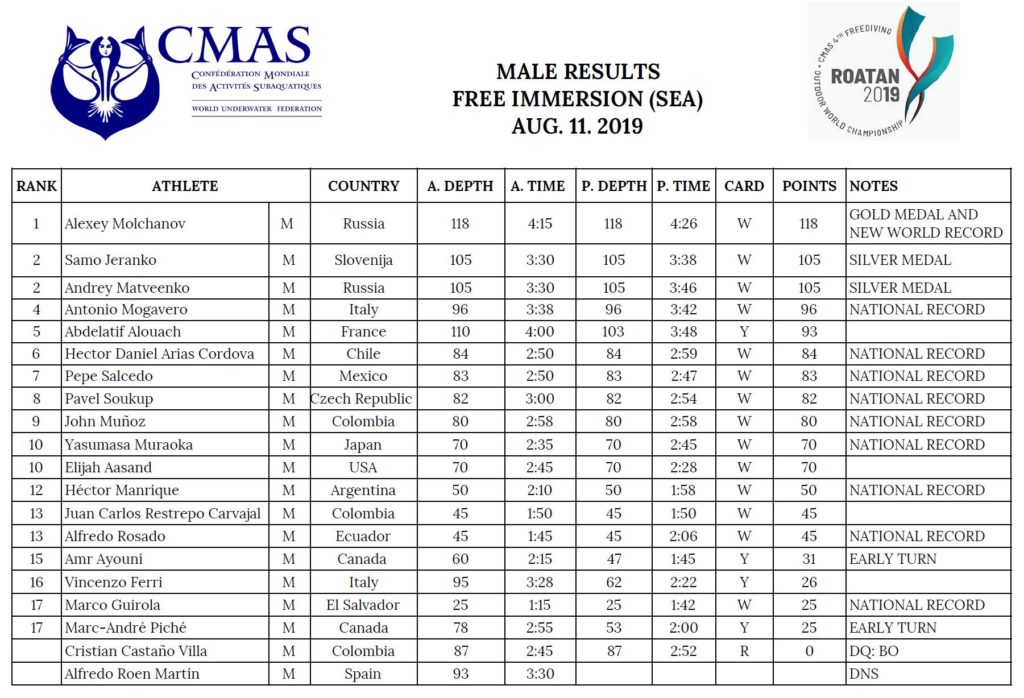 image Classifica Mondiale Maschile di Apnea Free Immersion 2019