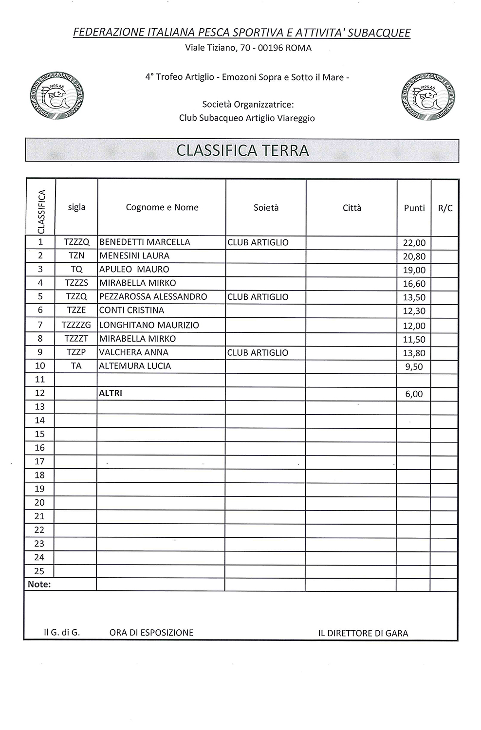 image Classifica Terra 4° Trofeo Artiglio