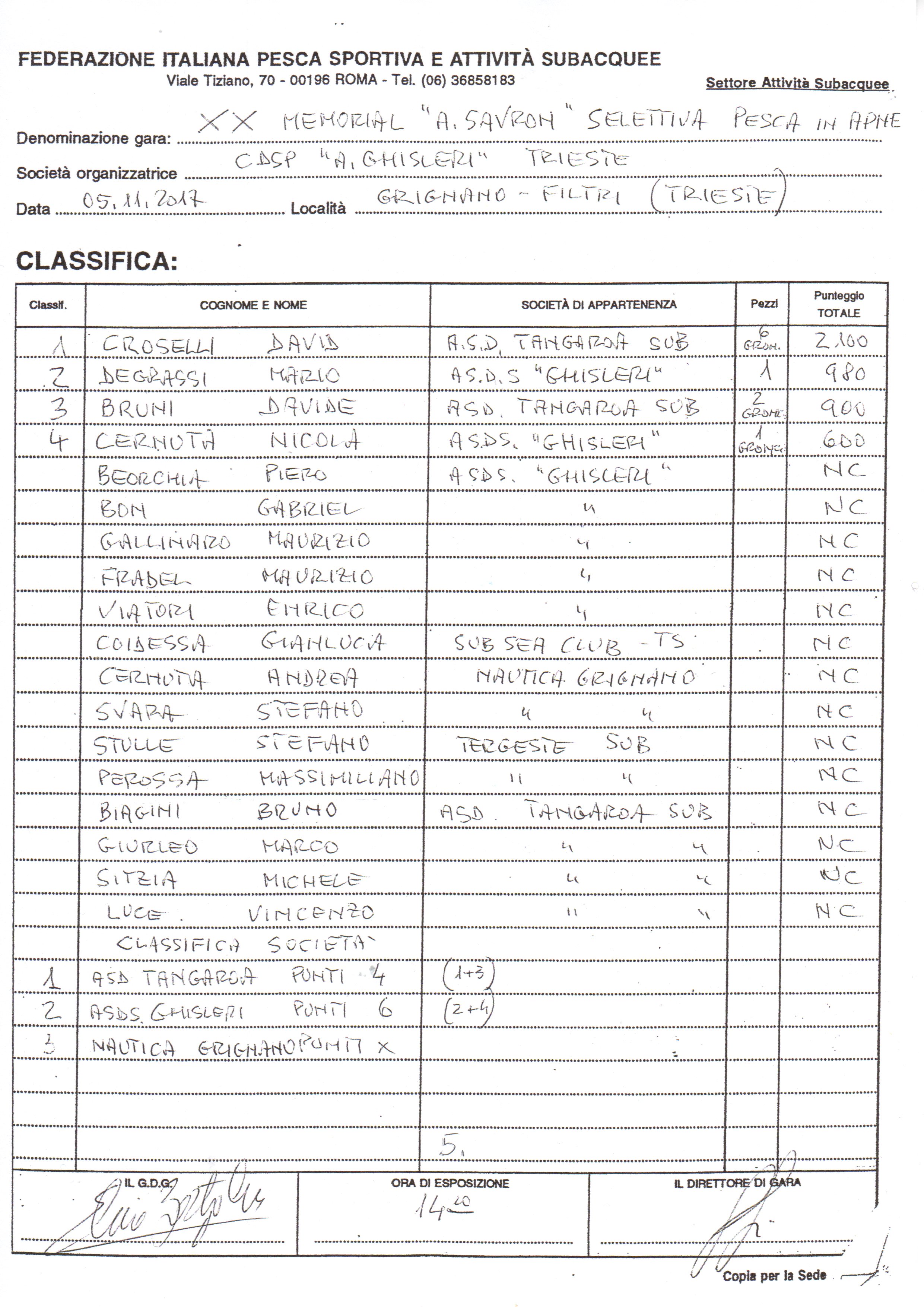 Classifica 20° Memorial Massimiliano Savron
