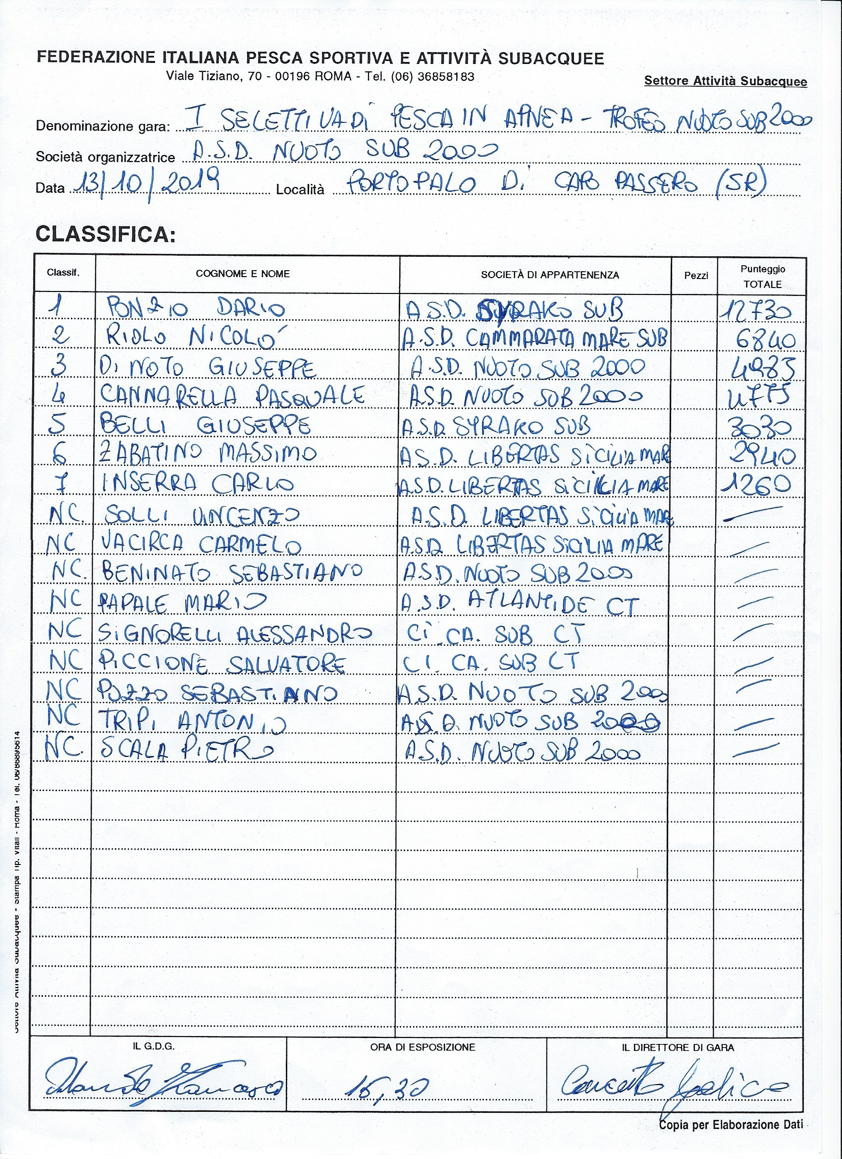 TROFEO NUOTO SUB 2000 - 13 Ottobre 2019