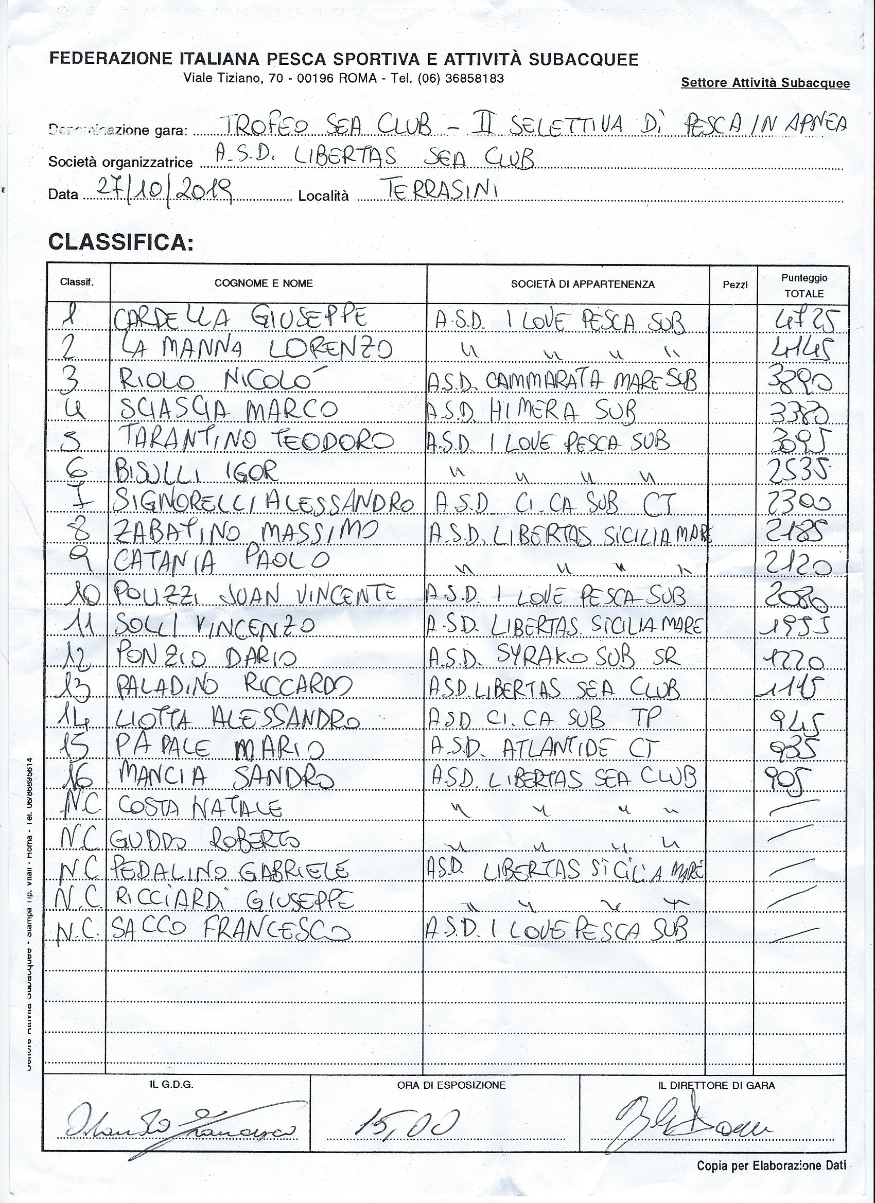 TROFEO SEA CLUB - 27 Ottobre 2019