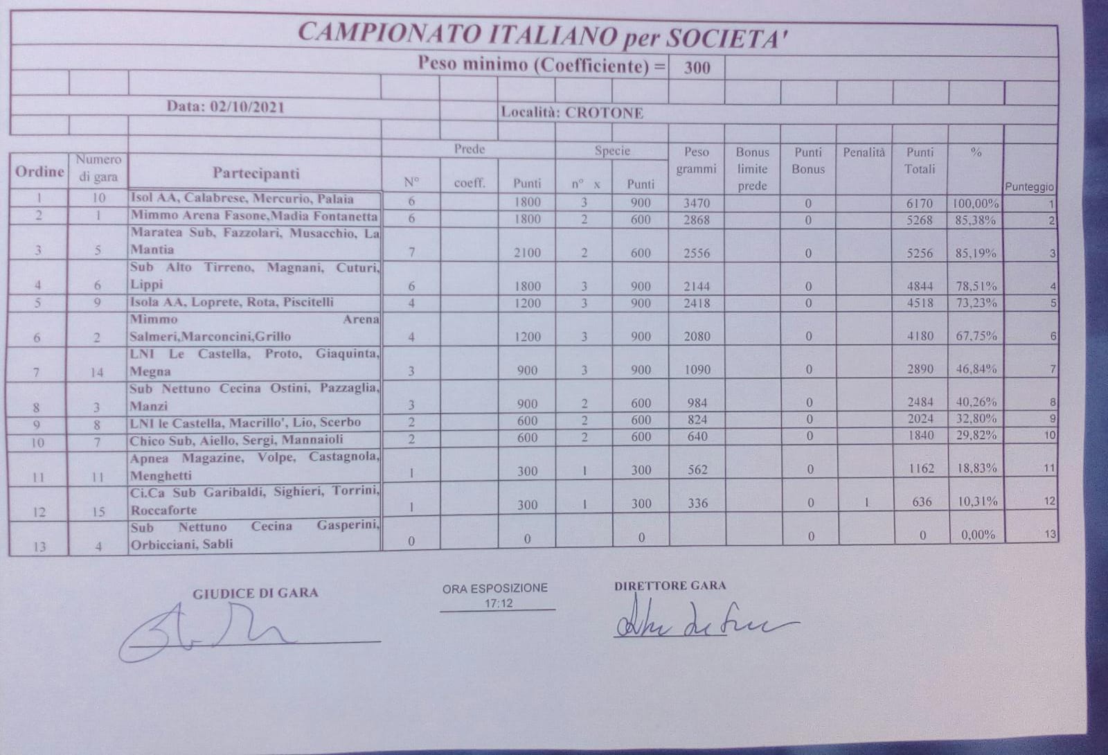 image Classifica Campionato Italiano per Società di Pesca in Apnea