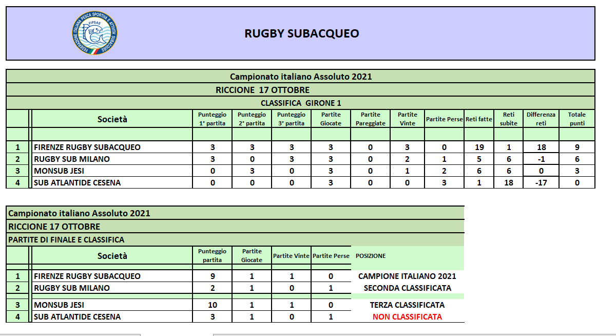 image Classifica Campionato Italiano Assoluto di Rugby Subacqueo