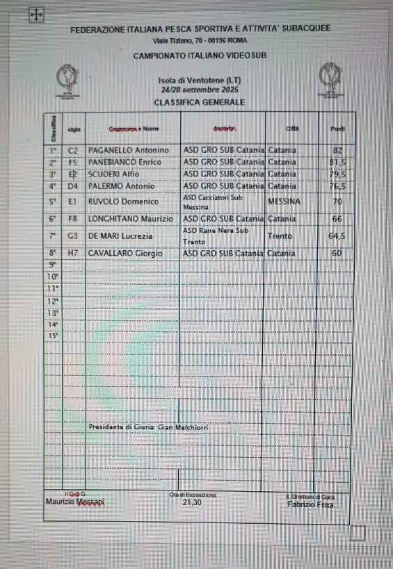 image Classifica Campionato Italiano di Video Subacqueo 2025