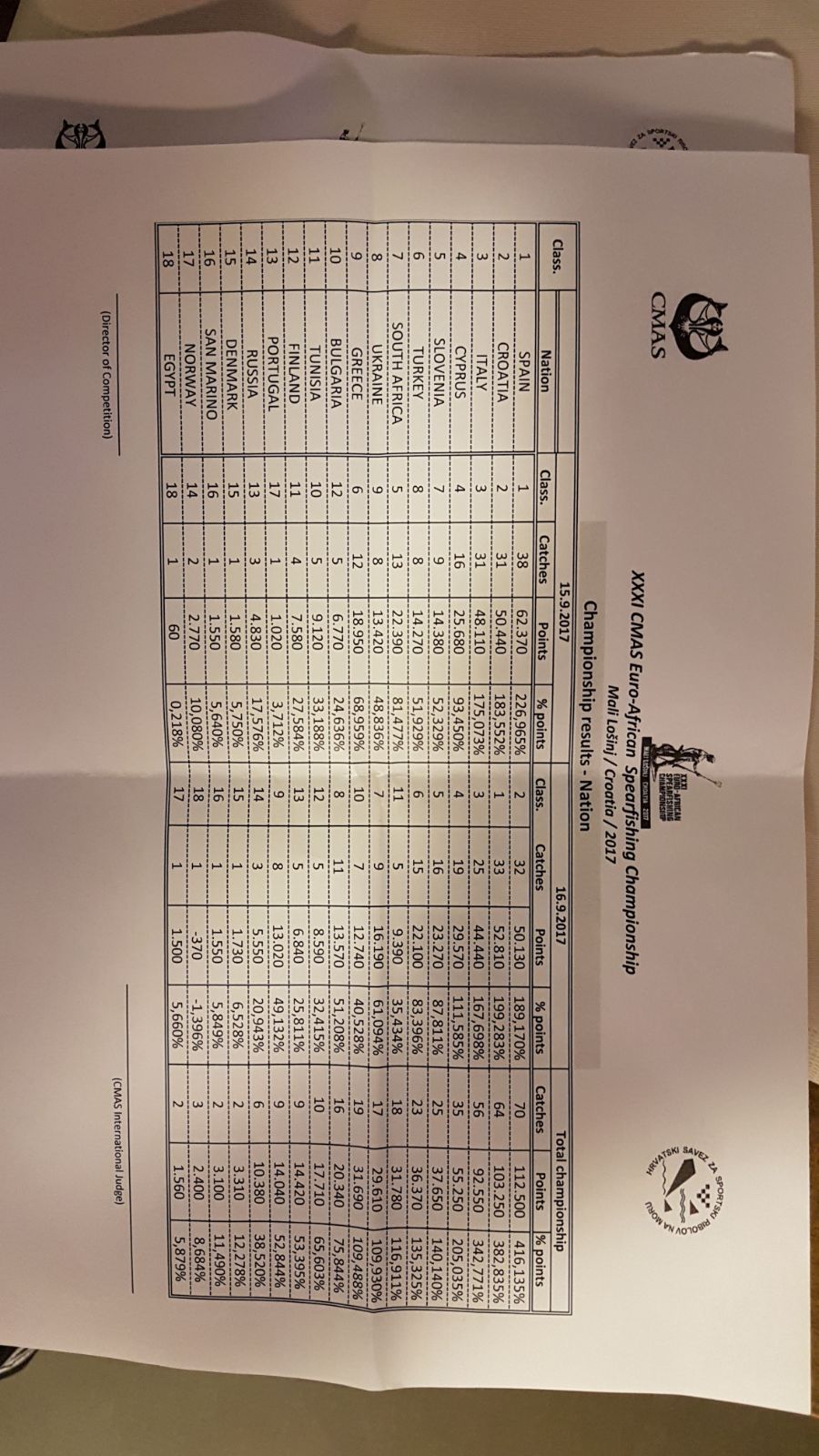 Il croato Daniel Gospic si è aggiudicato la 31^ edizione del Campionato Euro-Africano di Pesca in Apnea, disputatosi a Mali Lošinj, in Croazia, il 15 e 16 Settembre u.s.