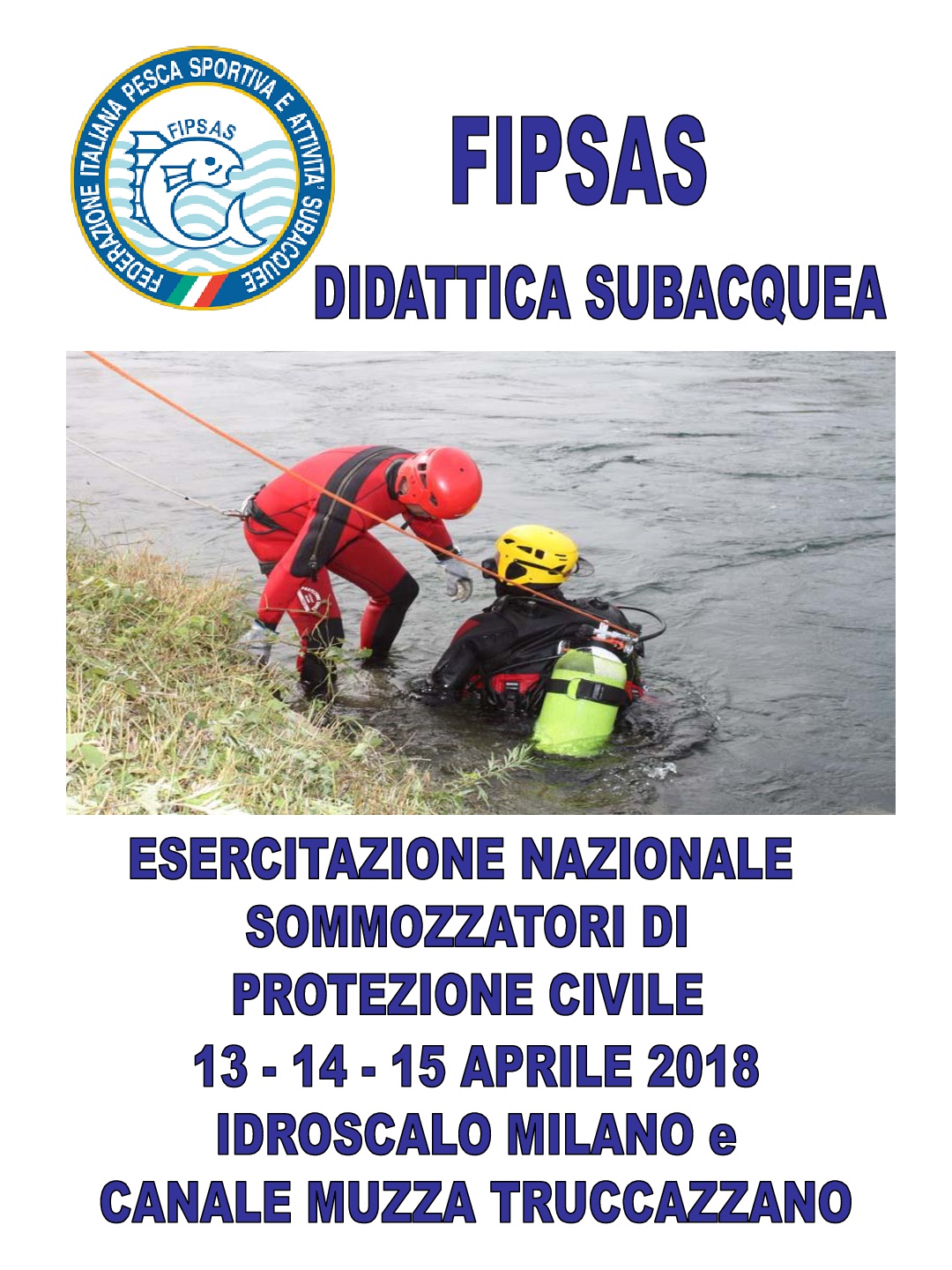 Il 13, 14 e 15 Aprile 2018 si svolgerà, presso l'Idroscalo di Milano ed il Canale Muzza Truccazzano, l'Esercitazione Nazionale Sommozzatori di Protezione Civile.